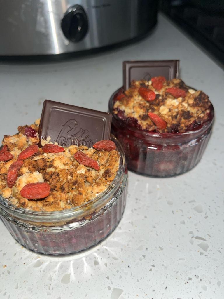 Mix together and add to the top after the 5 minutes is up (for the fruit mix)! Air fry for a further 10 minutes
