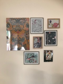 Nicki and I went a bit mad one day in B&Q and The Range and brought a load of wallpaper. I decided not to wallpaper or paint my walls. Instead we got lots to different frames and framed the samples we collected. I now have an eye-catching collage in my bedroom.