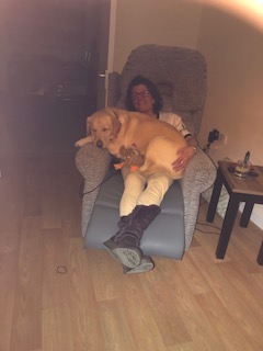 I love to share my recliner chair with anyone. Check out Nic and her gorgeous lab Pudding!